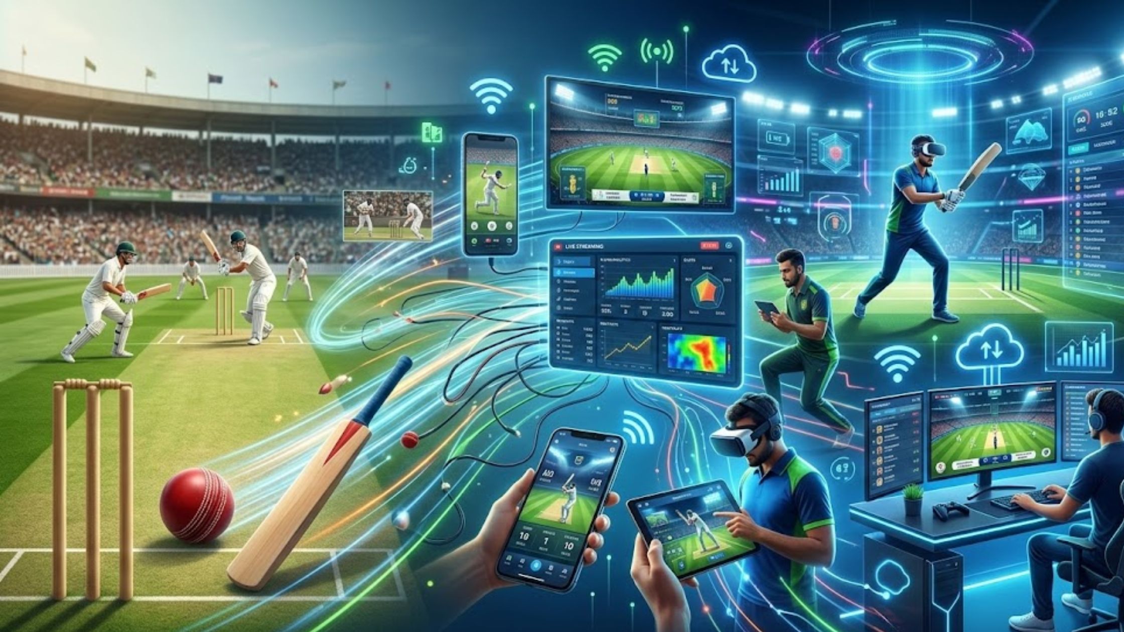 A vibrant digital illustration promoting the 11xPlay online entertainment platform where users can explore sports, gaming, and live action experiences. The image shows gamers and sports fans using smartphones, laptops, and gaming consoles to watch live cricket, participate in esports tournaments, and engage with interactive gaming features. Bright neon elements, gaming icons, leaderboards, and digital interfaces represent the modern online gaming ecosystem powered by the 11xPlay platform.